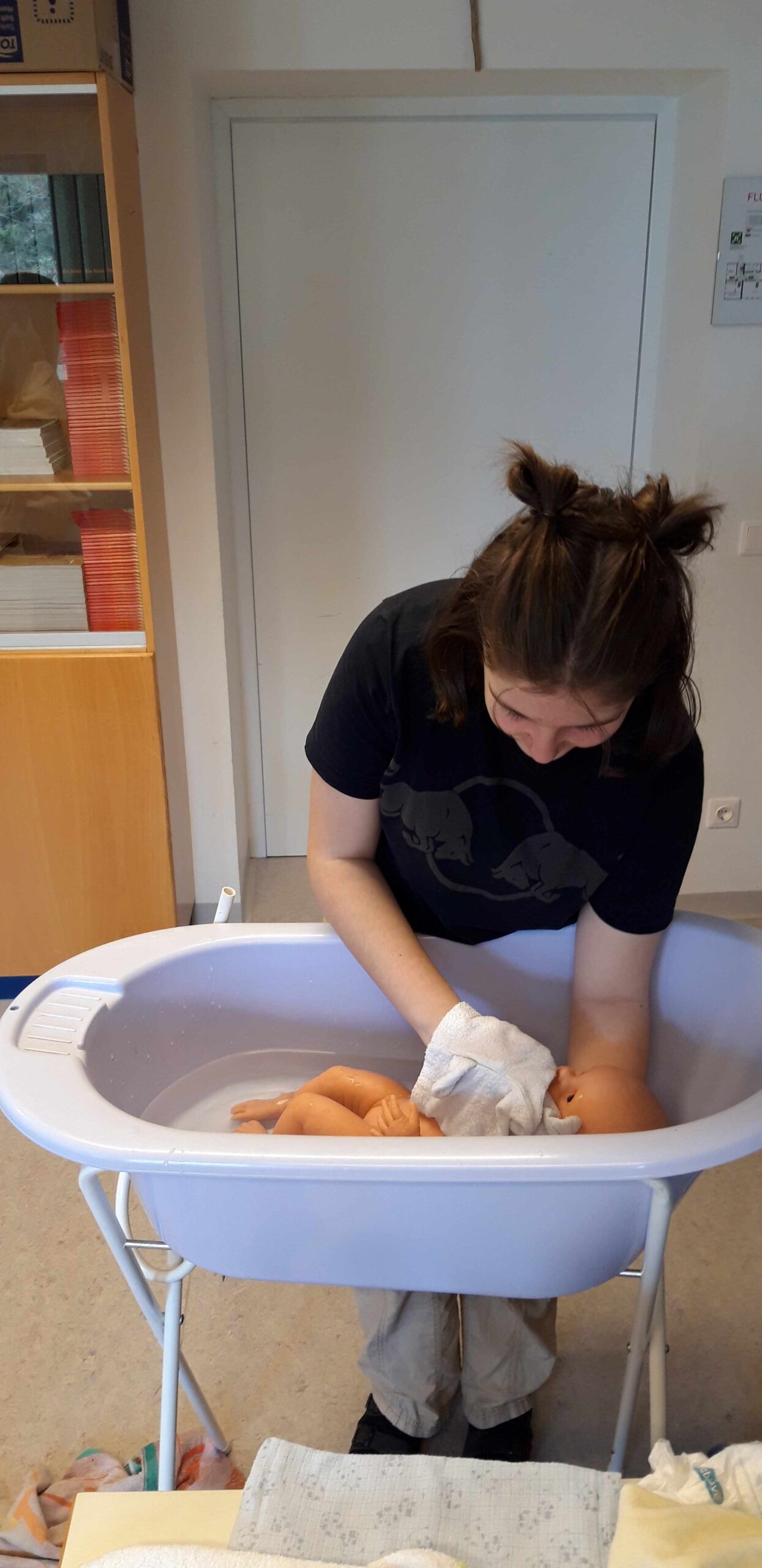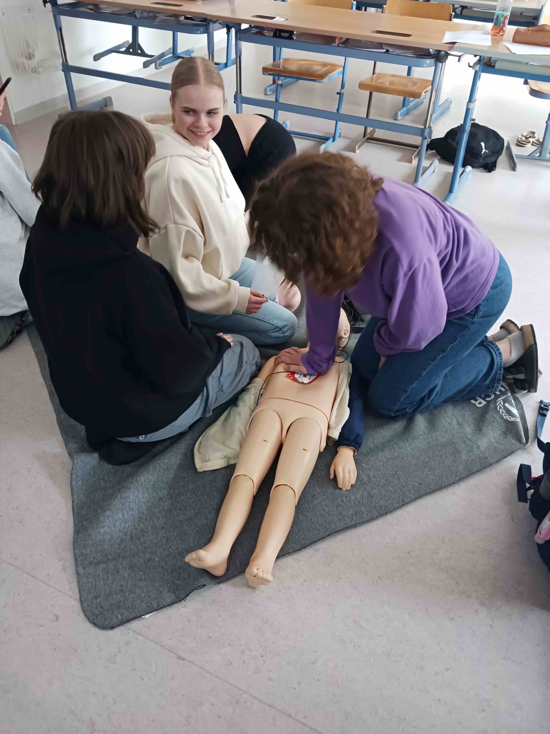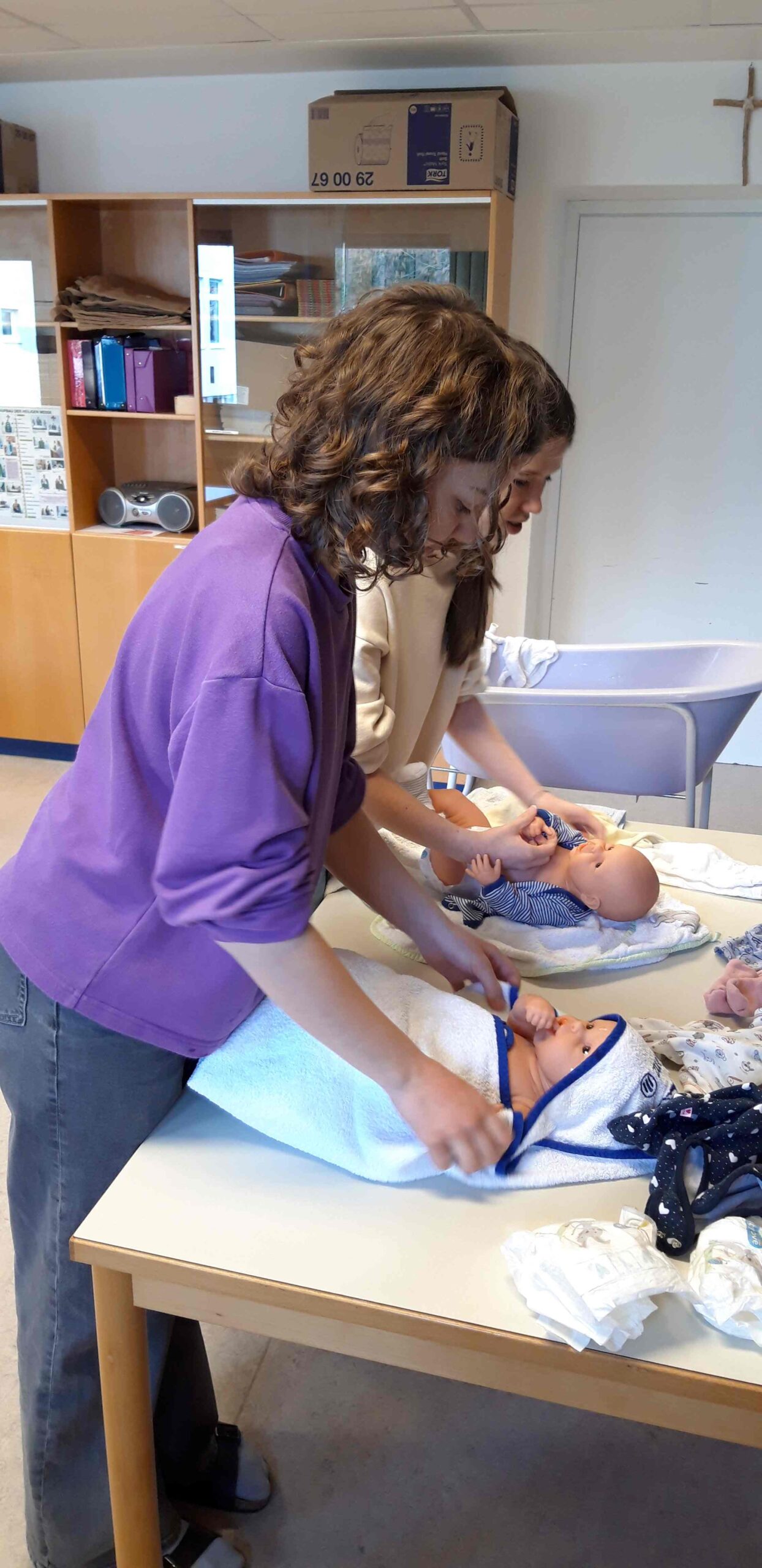 Beim Babysitterkurs „Babyfit“ für Jugendliche nahmen sieben Mädchen aus den vierten Klassen, die sich freiwillig gemeldet hatten, teil. In sechzehn Stunden lernen die Kids alles Wissenswerte über Babys und Kleinkinder. Der Themenbogen des Kurses spannt sich über Ernährung, Pflege, Schlafen bis Spielen und bietet viele praktische Tipps. Außerdem lernen die Babysitter, in einem Notfall richtig zu reagieren und lebensrettende Sofortmaßnahmen praktisch umzusetzen.